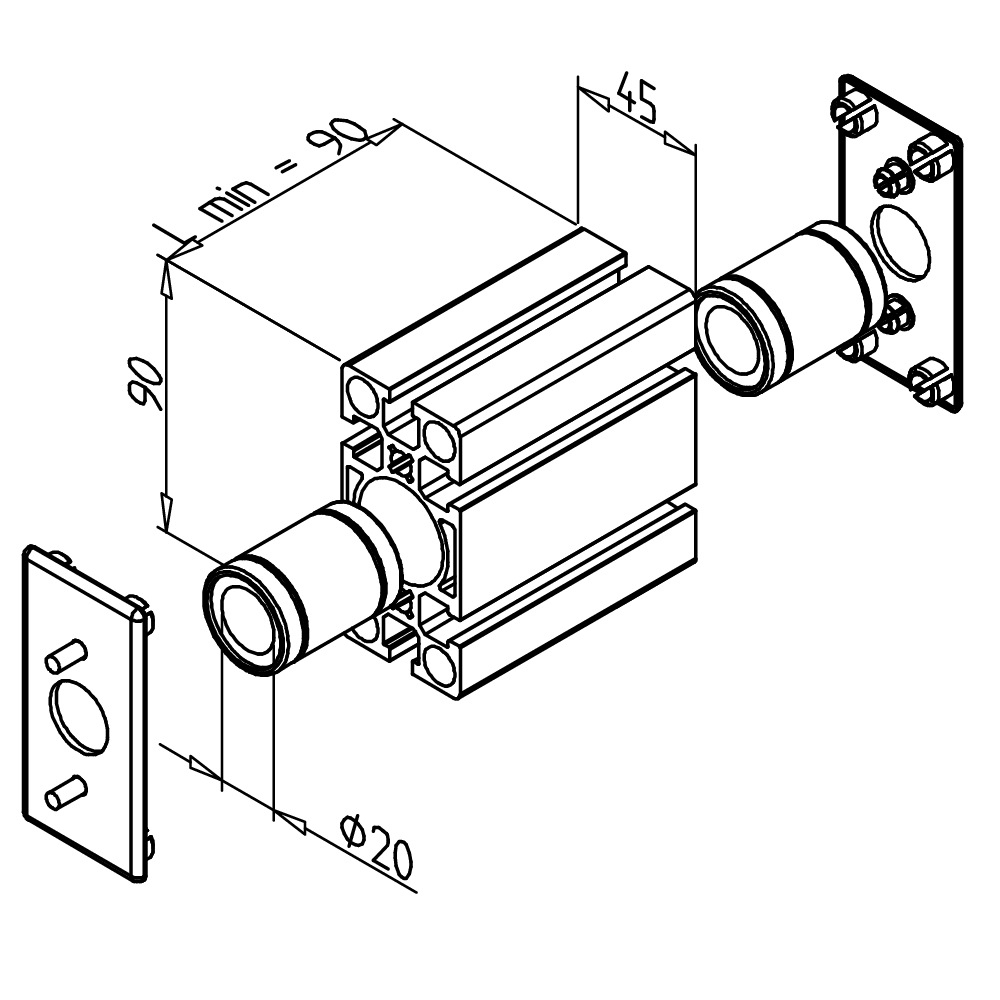 • Profil zaprt na sprednji strani z zaščitnimi ploščami LB 45