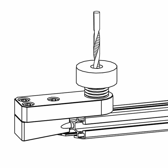 Nastavek za vrtanje lukenj za kotni spojnik 30 omogoča natančno vrtanje lukenj, enostavno pozicioniranje in hitro pripravo aluminijastih profilov za montažo.