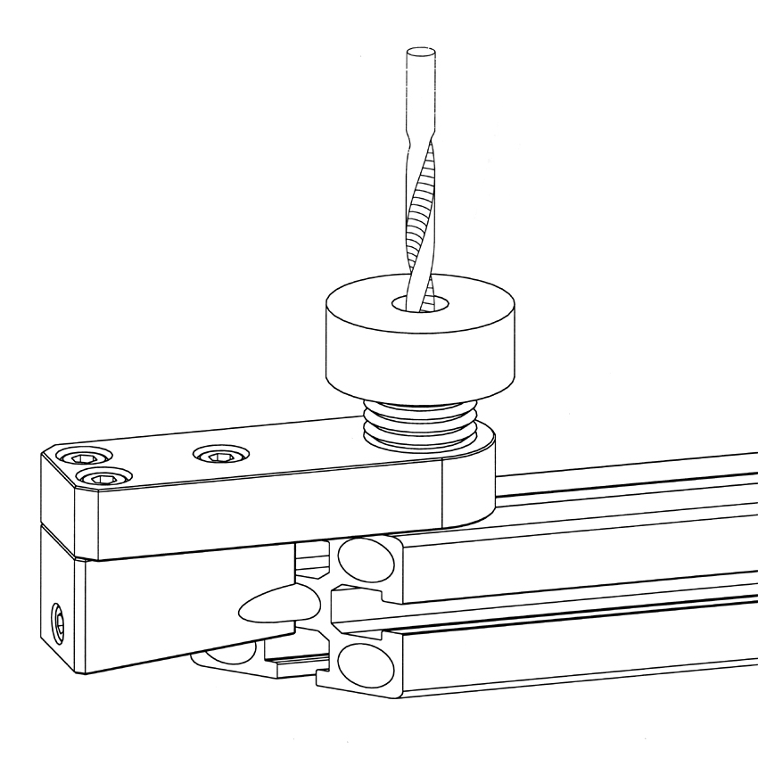 Nastavek za vrtanje lukenj za kotni spojnik 45 omogoča natančno vrtanje lukenj, enostavno pozicioniranje in hitro pripravo aluminijastih profilov za montažo.