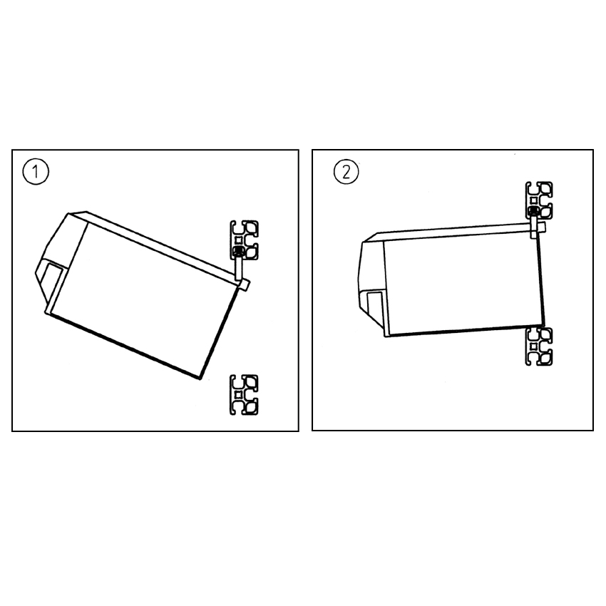 Nosilec z zapahom 40 mm za pritrditev zabojev in predalov, zasnovan za stabilno in hitro montažo na industrijske police.