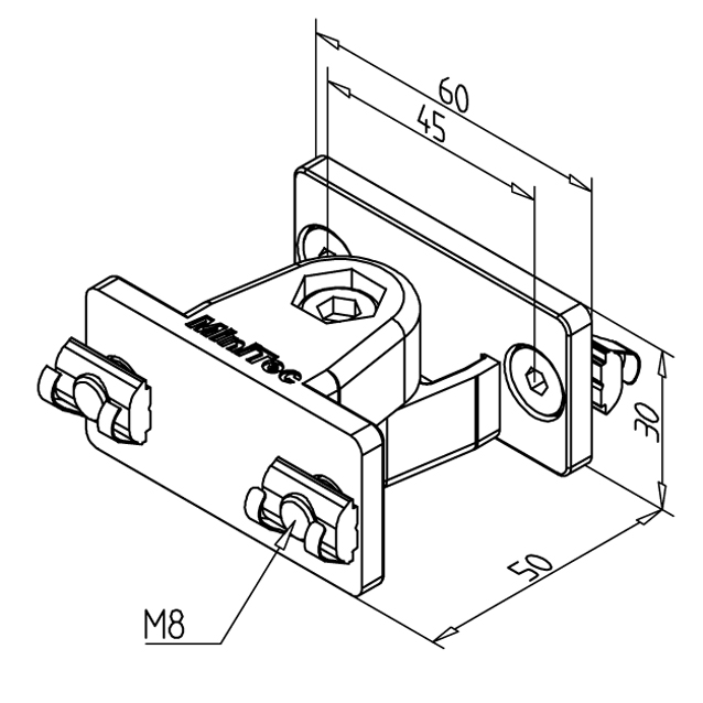 Zglob za alu profile 30 F omogoča gibljivo, zanesljivo in trdno povezavo aluminijastih profilov za prilagodljive in vzdržljive konstrukcije.