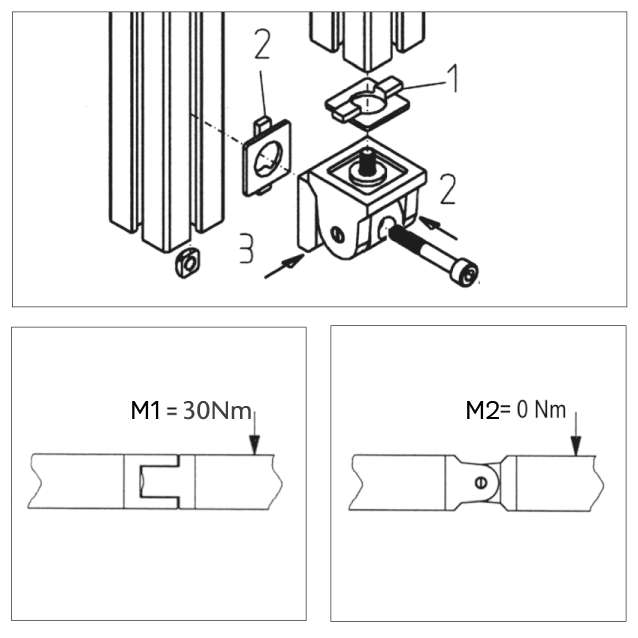 • Za uporabo na vertikalnih stebrih, vrtljiva povezava ident št. 212030/1 in 21.2010/7 (kvadratne matice s fiksacijo položaja)