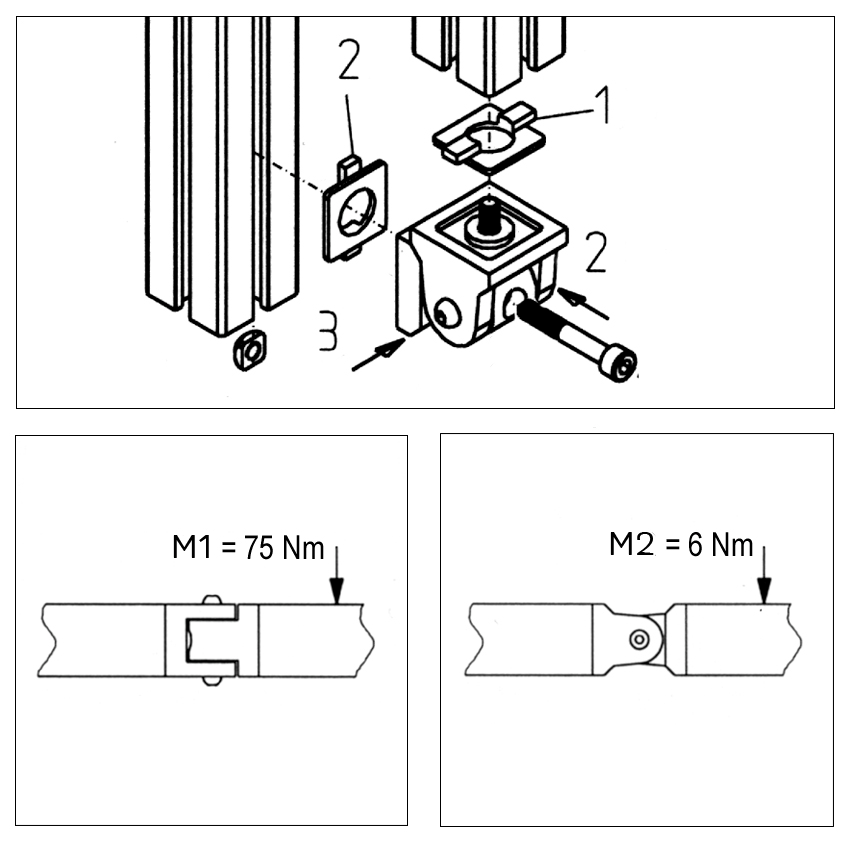 • Za uporabo na navpičnih nosilcih, člen ident št.212030/1 (kvadratne matice s fiksacijo položaja)