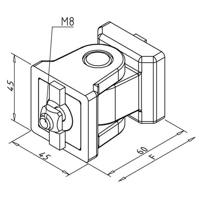 Zglobni člen za alu profile 45/15 omogoča rotacijsko, močno in zanesljivo povezavo profilov za prilagodljive ter trajne konstrukcije.